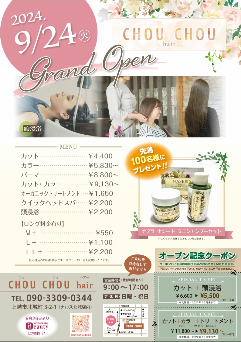 CHOU CHOU hair  OPEN記念のご案内